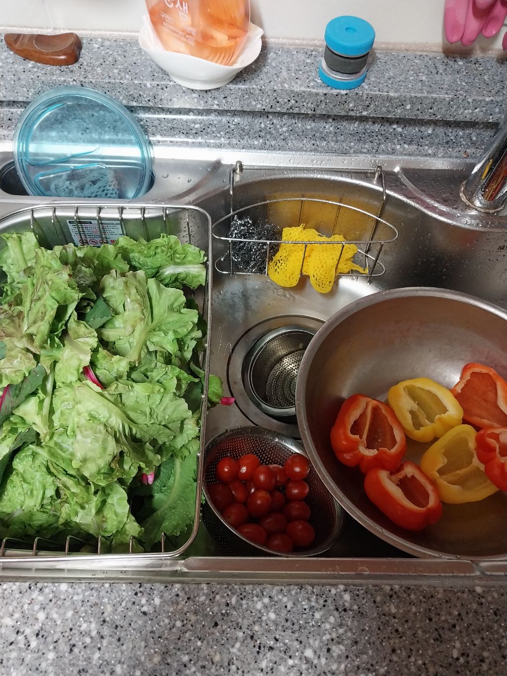 야채들과 달걀로 샐러드를 만들어 먹으며 한끼를 대체 했다.
